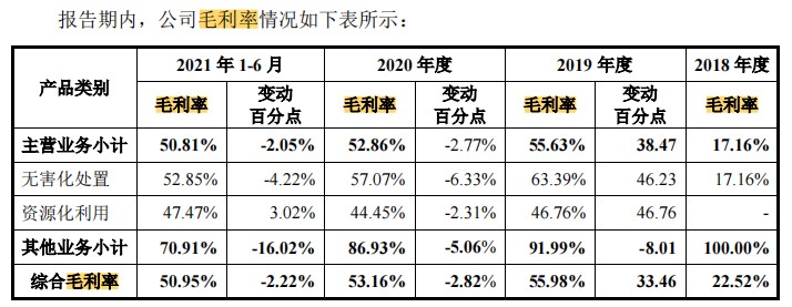 丛麟环保在招股书中称,由于国家政策支持以及毛利率本身高等原因,近年来大型国有企业和民间资本纷纷进军该领域。未来若有更多企业进入该行业,将大幅提升我国危废处理产能,使得危废处理价格比如焚烧单价下降。