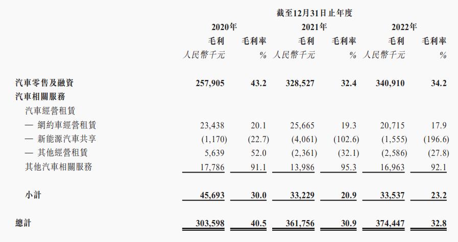 在喜相逢的几大核心业务中,汽车零售及融资的毛利率大幅波动,导致整体毛利率也大幅波动,且除其他汽车相关服务(主要是保险业务)的毛利率保持较高水平外,其他业务均表现不佳,尤其是新能源汽车共享和其他经营租赁业务在2021年、2022年已经出现了毛亏。