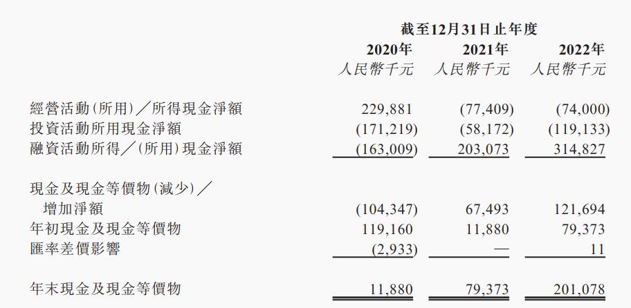 2021年和2022年,喜相逢经营活动、投资活动所产生的现金净额均为负数,之所以能够实现现金及现金等价物净额为正数,主要是融资活动所得。据招股书,客户根据租期(一般为2-4年)按月支付予融资租赁费用,而新车采购通常通过债务融资安排拨付资金。