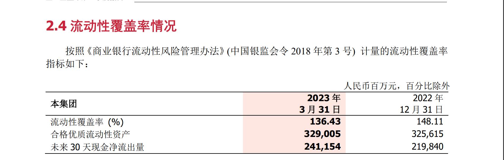 在流动性覆盖率指标方面,2023年一季度,浙商银行的流动性覆盖率为136.43%,比2022年一季度的148.11%下降近12个百分点。