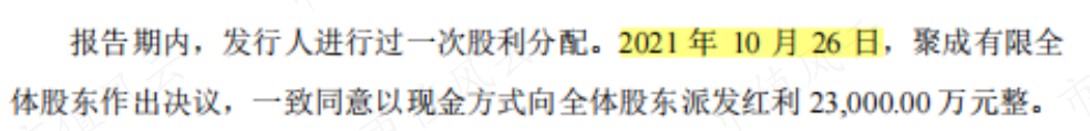2021年10月,赶在IPO前夕,聚成科技突击分红2.3亿元,近乎达到当年净利润0.33亿的7倍;如果拉长时间线,这个数字就是一下子分走2019-2021年累计盈利的八成以上。