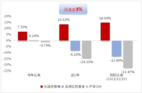 在投资中,邹建坚持追求较小风险下的更高收益,始终将风险控制置于投资全流程的首要环节。在这一理念的指引下,即使近一年市场风起云涌,邹建执掌大成多策略的最大回撤依然控制在-10.51%,小于近一年业绩比较基准最大回撤-13.35%,远小于同期沪深300最大回撤-21.96%。