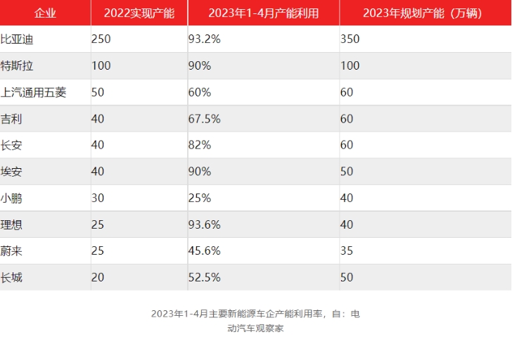 比亚迪之所以敢在整体市场需求萎缩的大环境下,使用“死道友不死贫道”战略,主要是因为自身技术、产品竞争力足够出色。在其疯狂扩产的过程中,其产能利用率基本都能维持在超过90%的高水平。有“涨”自然也有“消”,根据相关数据统计,五菱、吉利等传统车企的产能利用率不过60-70%,新势力中的蔚来和小鹏产能利用率均不足50%。