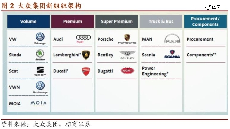 大众集团当前繁多的业务线和品牌设置