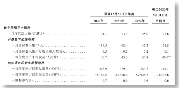 数字阅读平台业务数据 摘自《招股书》
