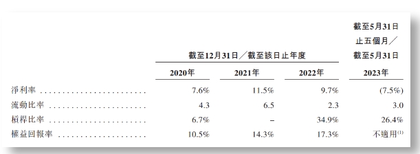 主要财务指标 摘自《招股书》