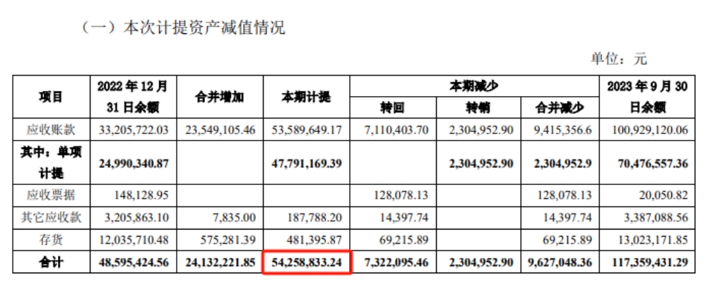 三季报披露同日,新亚制程披露了2023第三季度计提资产减值准备的公告。公告显示,此次计提减值准备合计金额为5425.88万元,将减少公司2023年1-9月归属于母公司股东的净利润4693.97万元,占公司最近一个会计年度经审计归属于母公司股东的净利润的191.54%。