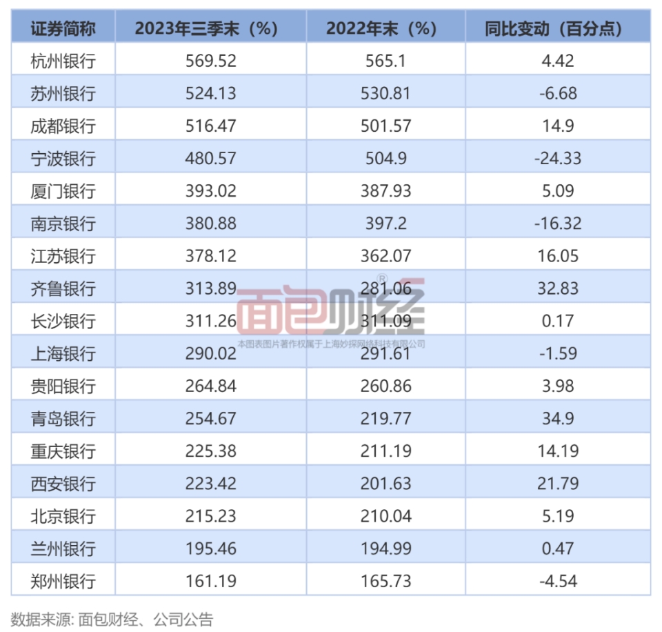 随着2023年三季报收官,面包财经研究员对17家上市城商行经营业绩及核心监管指标进行了整理。