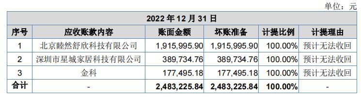 申报稿显示,玛格家居对深圳市星城家居科技有限公司38.97万元的应收款项预期信用损失率为 100%,并已全额计提了坏账准备,其主要原因为:目前已无法与其取得联系。