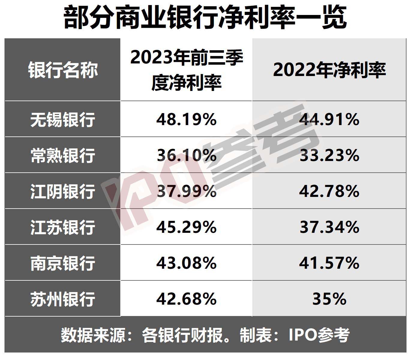 其实,无锡银行净利润的大幅提升得益于净利率的大幅提升。2023年前三季度无锡银行的净利率为48.19%,而上一年同期其净利率为41.95%,同比提升了6.24个百分点。此前2020年同期的净利率为35.05%,2021年同期的净利率为37.90%,近4年前三季度,无锡银行的净利率呈稳步提升趋势,4年同期提升了13.14个百分点。