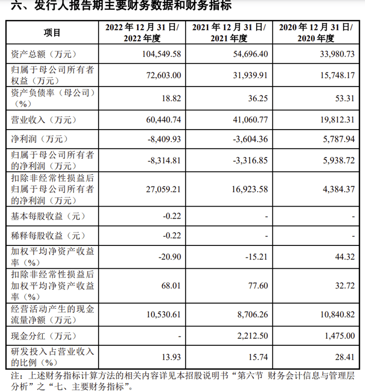 招股书显示,2020年至2022年,长光辰芯实现营业收入分别约为1.98亿元、4.11亿元、6.04亿元,扣非归母净利润分别约为4384万元、1.69亿元、2.71亿元。