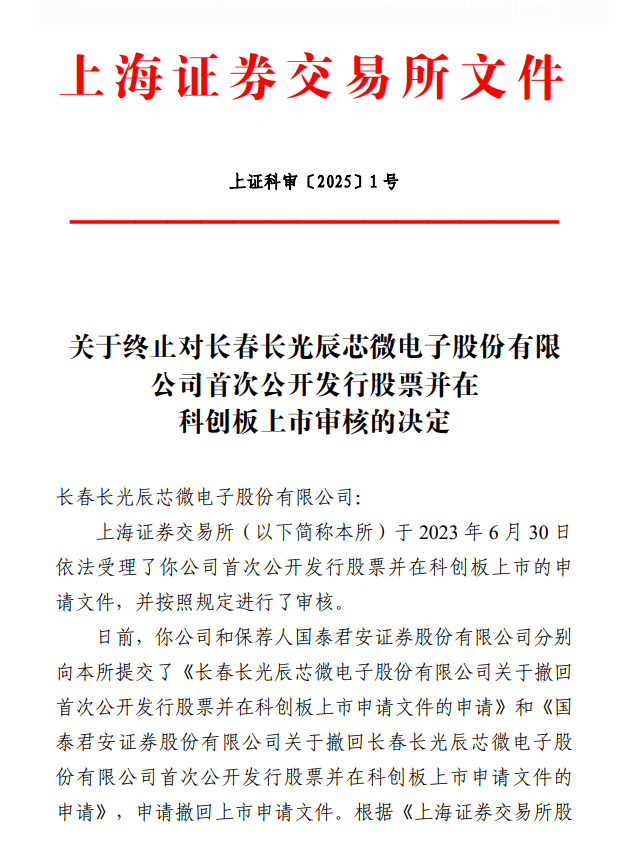 近日,上交所公布关于终止对长春长光辰芯微电子股份有限公司(下称“长光辰芯”)首次公开发行股票并在科创板上市审核的决定。据上交所官网披露,此次终止IPO是因为长光辰芯及保荐人申请撤回材料。长光辰芯称,基于公司未来发展战略等因素主动撤回。