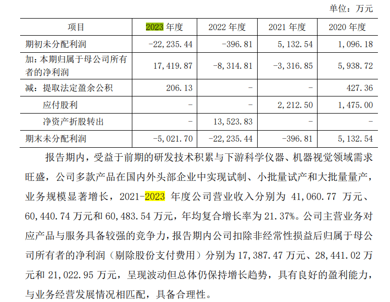 2021年和2022年,长光辰芯的归母净利润分别为-3317万元、-8315万元,主要原因是该两年股份支付费用较高,分别计提股份支付费用2.15亿元、3.77亿元。