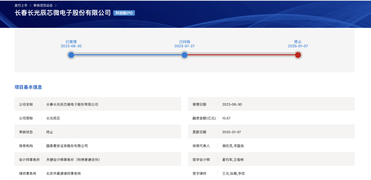 经历了1年半的时间,长光辰芯IPO还是失败了!