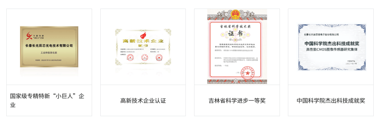 2022年,长光辰芯获得了国家级专精特新“小巨人”企业称号,2021年首次入选国家鼓励的重点集成电路设计企业清单,并分别于2022年和2023年再次入选国家鼓励的重点集成电路设计企业清单。