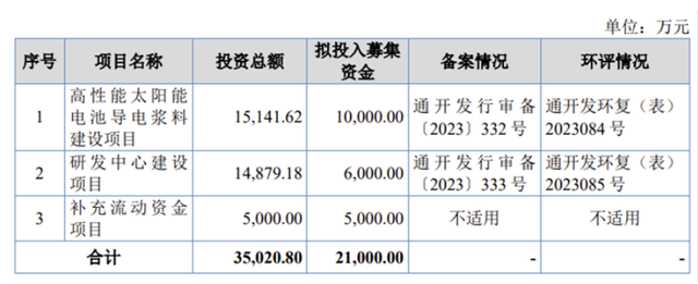 天盛股份拟募资21000.00万元,分别用于高性能太阳能电池导电浆料建设项目、研发中心建设项目和补充流动资金。
