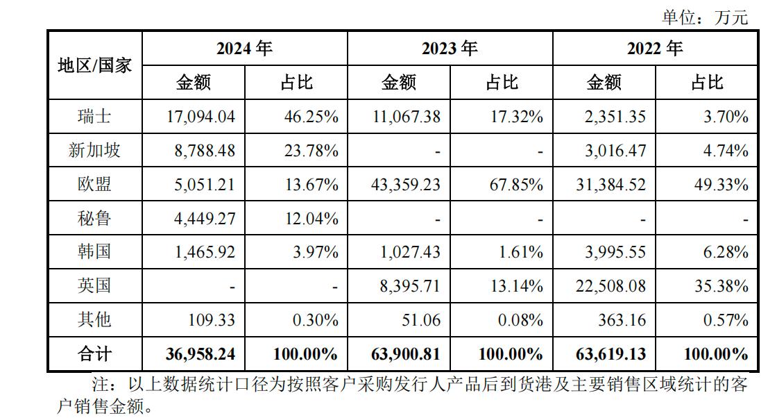 需要注意的是,欧盟是全球最大的生物柴油消费地区,欧盟地区的消费量占全球生物柴油总消费的34.65%。尽管丰倍生物在招股书中表示已将出口市场转向新加坡、瑞士等非欧盟国家,并表示新加坡市场已成为第一大出口区域,但相比欧盟2021年就能带来超3.3亿元的收入,来自新加坡和瑞士2023年的收入尚没能完全弥补欧盟市场留下的巨大缺口。若通过非欧盟国家进行转口,产品最终仍流向欧盟,极有可能面临欧盟反规避调查的进一步制裁,相关风险不容忽视。