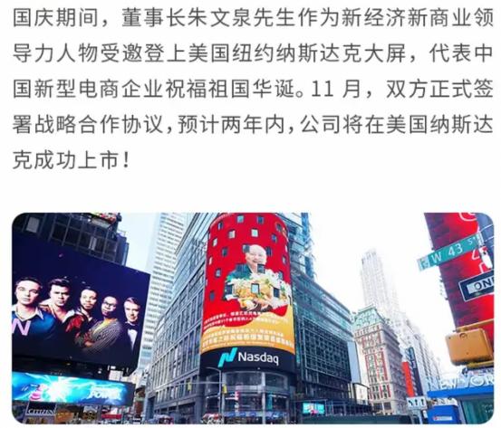 2020年9月,朱文泉就出现在纽约纳斯达克的宣传大屏中,大树云更是在官方宣传中称预计在两年内在纳斯达克上市。可以说,大树云自成立起就将上市定为核心目标,而且信心满满。