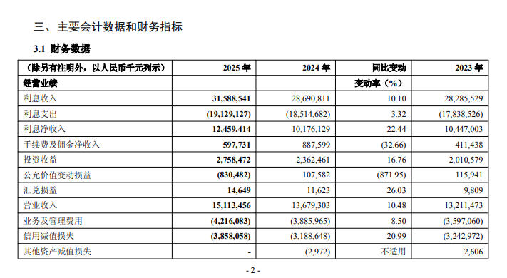 3月24日,重庆银行股份有限公司(601963.SH/01963.HK,下称“重庆银行”)发布2025年报,数据显示,2025年,该行实现营业收入151.13亿元,同比增长10.48%;实现净利润61.05亿元,同比增长10.58%;实现归属于该行股东净利润56.54亿元,同比增长10.49%。