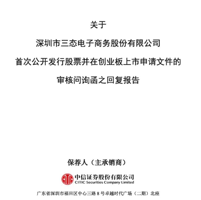 2022年1月5日,深交所官网显示,深圳市三态电子商务股份有限公司(下称“三态股份”)回复了监管首轮问询,内容涉及业务模式、竞争优势、历史沿革、对赌协议等方面。
