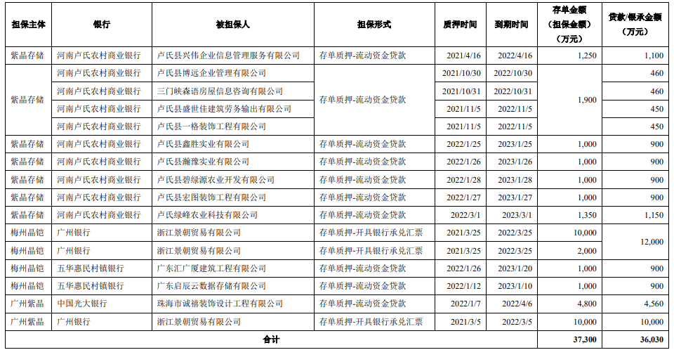 3月14日凌晨,紫晶存储(688086.SZ)发布公告称,通过对银行存款情况进行自查,发现公司及子公司截至2022年3月10日定期存单违规质押担保余额合计3.73亿元,被担保人实际通过流动贷款和开具银行承兑汇票取得资金合计3.603亿元,共涉及为14家被担保人在4家银行的流动资金贷款或开具银行承兑汇票提供16笔违规担保,尚未发现上述违规担保事项涉及首次公开发行的募集资金。