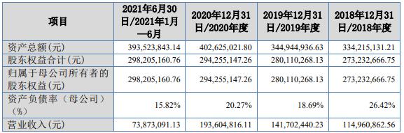 2018-2021年上半年,捷世智通的营业收入分别为1.15亿元、1.42亿元、1.94亿元、0.74亿元,归母净利润分别为-4576.71万元、687.76万元、1414.49万元、463.35万元。