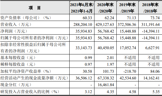 格力博的业绩总体上保持增长,于2019年由亏转盈。2018年至2021年上半年,格力博营业收入分别为31.12亿元、37.25亿元、42.91亿元、28.82亿元,净利润分别为-1.44亿元、1.54亿元、5.68亿元、3.59亿元。