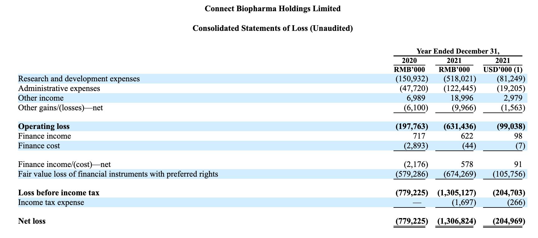 4月1日,康乃德生物医药(CNTB.NASDAQ)发布了2021年度财报。财报显示,2021年,康乃德生物医药录得经营亏损6.31亿元,2020年经营亏损为1.98亿元;录得净亏损13.07亿元,2020年净亏损为7.79亿元。