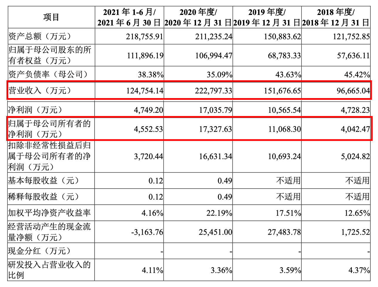 招股书显示,2018-2020年及2021年上半年,德尔玛营业收入分别为9.67亿元、15.17亿元、22.28亿元、12.48亿元,归母净利润分别为0.40亿元、1.11亿元、1.73亿元、0.46亿元。