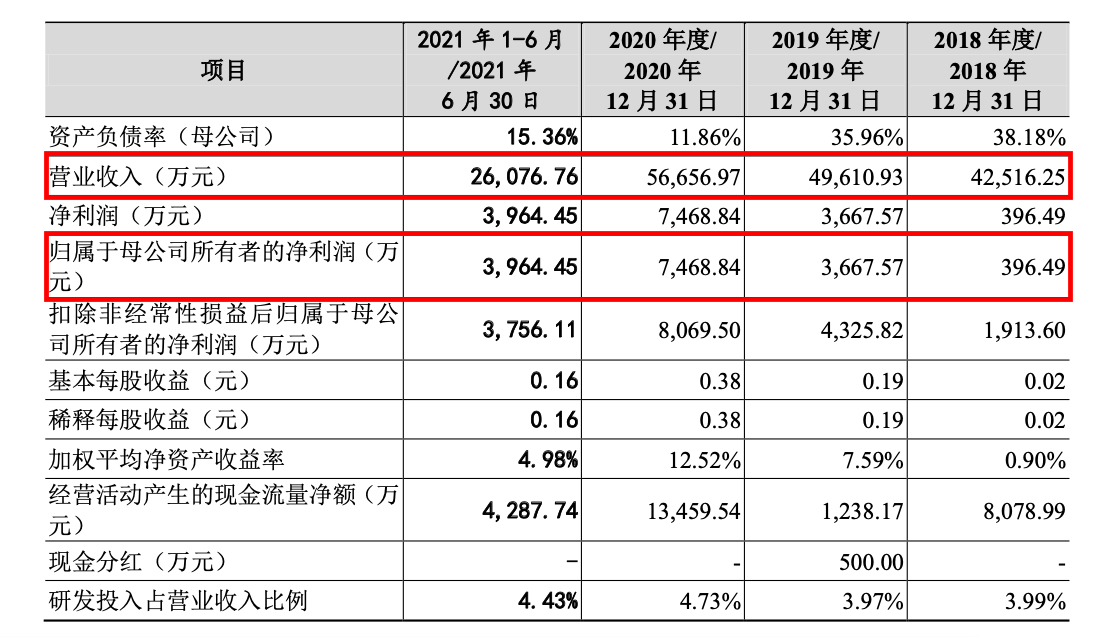 招股书显示,2018-2020年及2021年上半年,乾元浩营业收入分别为4.25亿元、4.96亿元、5.67亿元、2.61亿元,归母净利润分别为0.04亿元、0.37亿元、0.75亿元、0.40亿元。