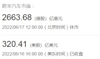 1. 蔚来汽车:2663.68(港股)亿港元、320.41(美股)亿美元;